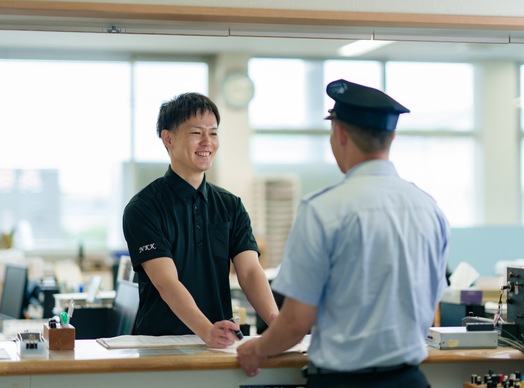点呼業務とは:車両点検の結果や健康状態・アルコールチェックについて運転手から報告を受け、運行内容や道路状況などを共有する業務です。