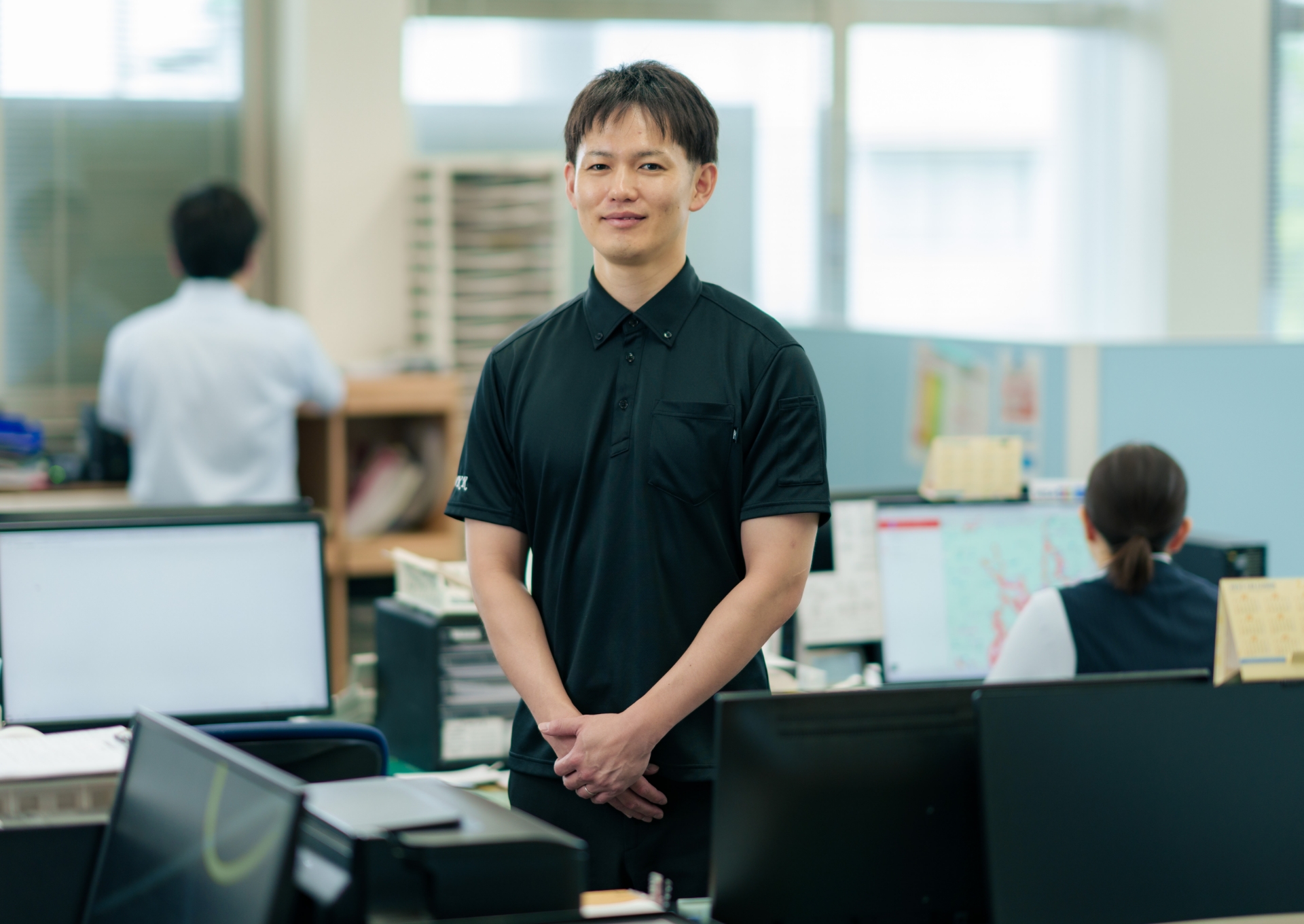 運行管理の業務では、運行スケジュールの調整や路線ごとの道路状況の把握を行い、整備部門と連携しながら、バスの安全な運行を裏方として支えています。とても面白くやりがいある仕事です。